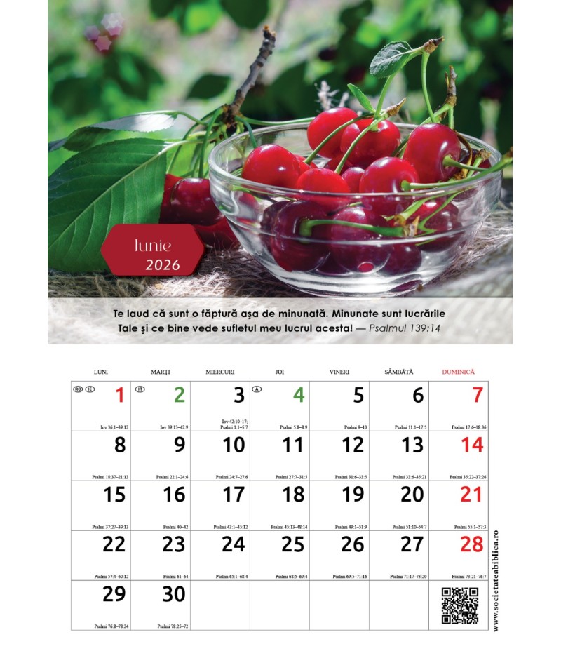 Conține sărbătorile religioase, zilele libere naționale din România și Europa și program zilnic de citire a Bibliei.