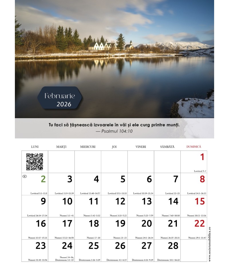 Calendar mare, de perete, cu spiră. Conține sărbătorile religioase, zilele libere naționale din România și Europa și program zilnic de citire a Bibliei. Pret calendar nepersonalizabil-..